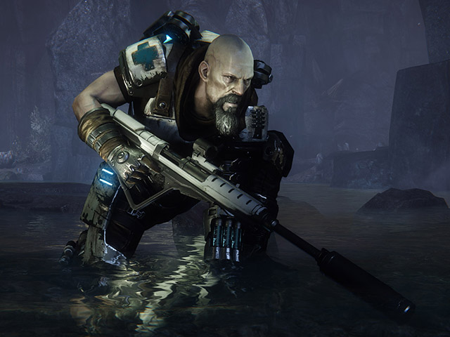 For example, Hyde, is armed with toxic grenades designed to target the monsters within Evolve. These grenades disperse a poisonous cloud upon explosion, a tactic used to direct monsters into the path of one of your teammates lying in wait. Maggie is fitted with harpoon-like traps which can be used to slow down monster movements. Lazarus on the other hand offers long range support in the form of his sniper rifle and personal cloaking device.