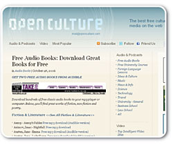 From the OpenCulture blog a whole list of places to get excellent free audio books. Enough to make you beg for more bandwidth.
