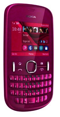 Leading the local Asha charge is the 303 (116.5 x 55.7 x 13.9 mm, 99 g), which couples a QWERTY keyboard with a 2.6" capacitive (240 x 320 pixels, 154 ppi pixel density) touchscreen. This mobile phone is powered by a zippy 1 GHz processor (make not specified) with makes especially quick work of running apps and navigating Nokia’s S40 mobile operating system (OS). Although users only have access to around 100 MB of onboard storage, they will be able to expand upon this via a microSD memory card with support for cards up to 32 GB in size.