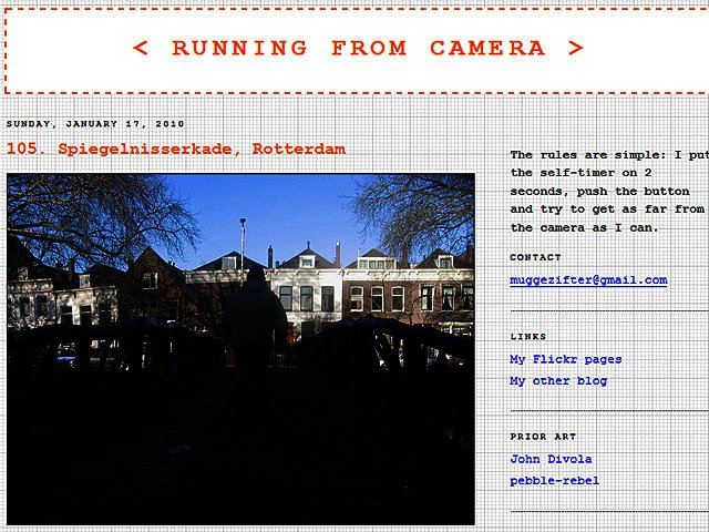 The Running from camera blog reminds us of the movie as, the premise for the blog is a guy who activates a 2 seconds self-timer on his camera, puts it down, pushes the capture button and then sees how far from it he can run before it takes his photo.