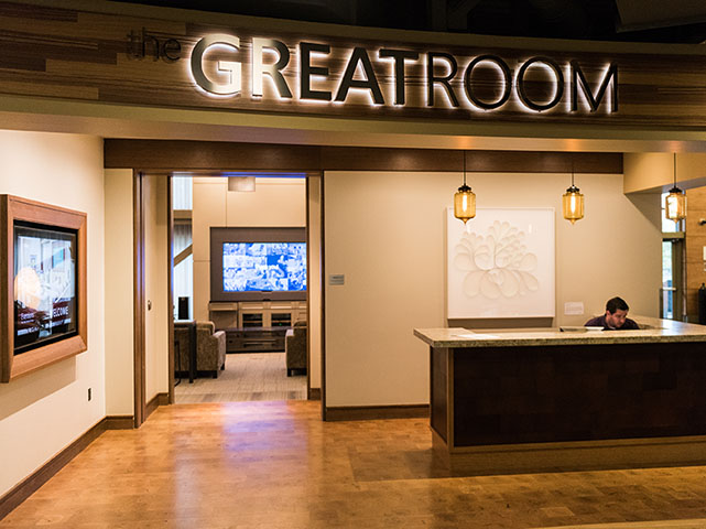The tour began in a room that most resembled a spacious and elegant lounge, replete with comfortable couches, a home theatre system and warm lighting fixtures. This was not by accident, but rather meant to reflect how central technology has become to our lifestyles, as well as what workspaces in the 21st century can look like.
