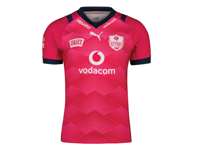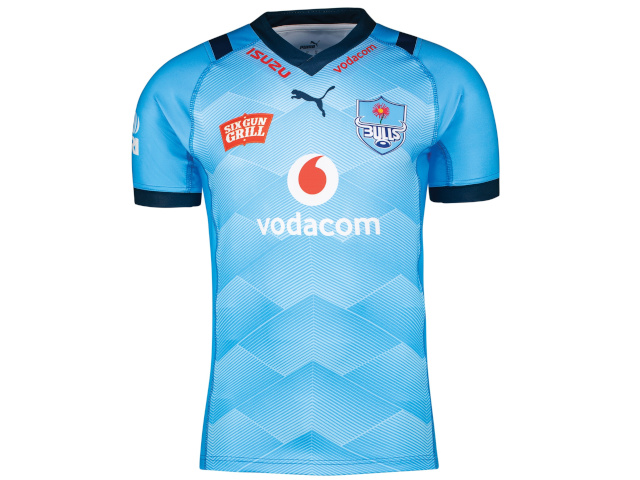 The new Vodacom Bulls Home jersey is in sky-blue, while the Alternative kit marks the return of the provocative but top-selling pink jersey which debuted in February 2012. The pink jersey was controversial at first, but these days you will find a number of the supporters, both female and male, sporting a pink Bulls jersey at Loftus Versfeld. Interestingly, the Bulls and sponsors logos are monochrome to add to the unique style of the Alternative jersey.